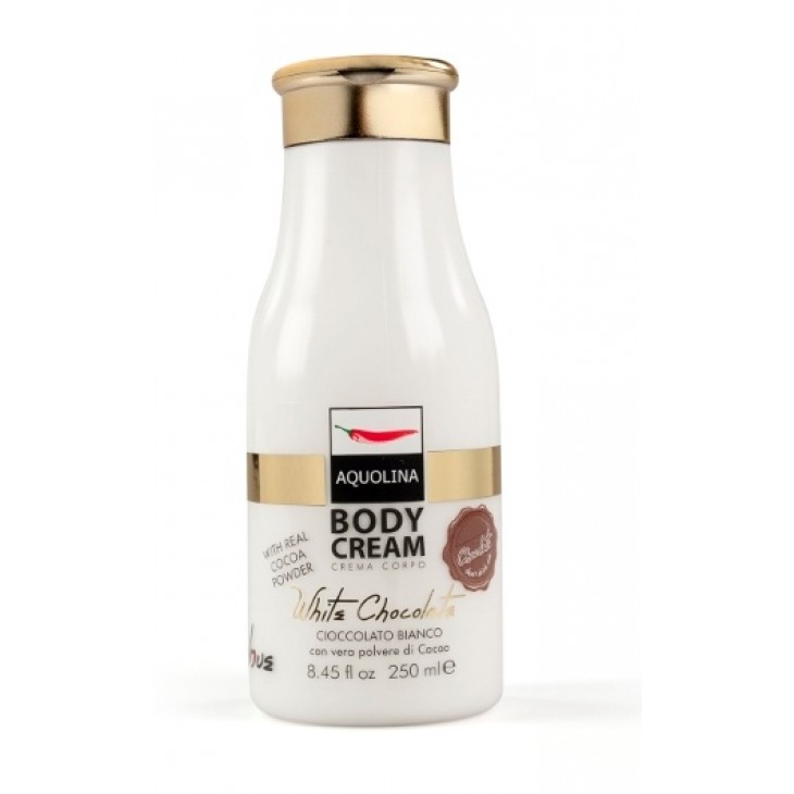 Body Cream - White Chocolate, a silky, truly hydrating, formula, enriched with emollient and antioxidant, yet with an easy absorption, leaves the skin soft and gently long lasting scented.Chocolate and Vanilla merged in this sweet and refined proposal.